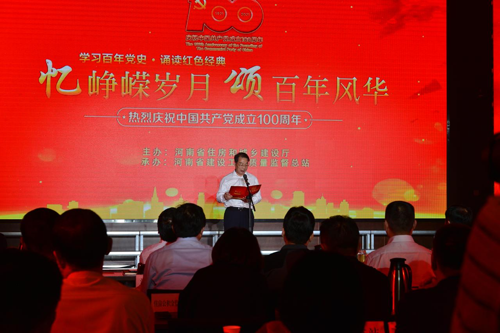 在熱烈慶祝中國共產(chǎn)黨成立100周年之際,河南省住房和城鄉(xiāng)建設(shè)廳“憶崢嶸歲月 頌百年風(fēng)華”——百首詩歌頌黨史展演會于6月18日下午,在河南建設(shè)大廈隆重舉行。