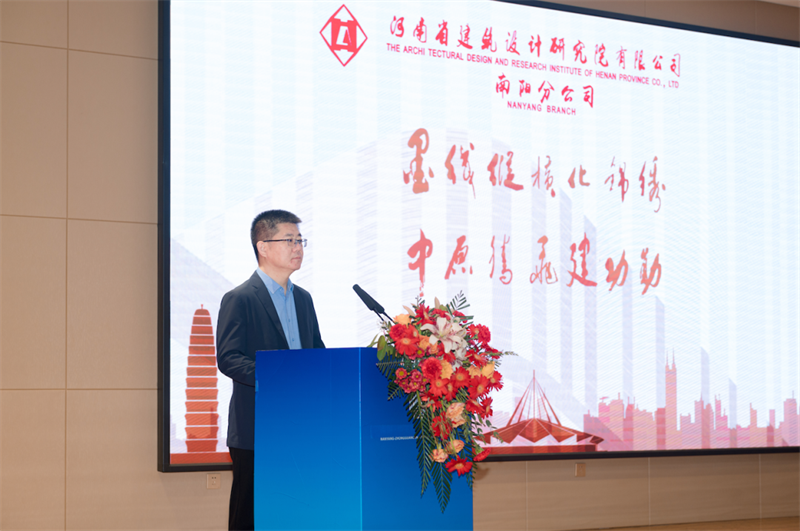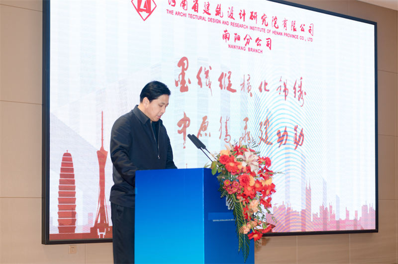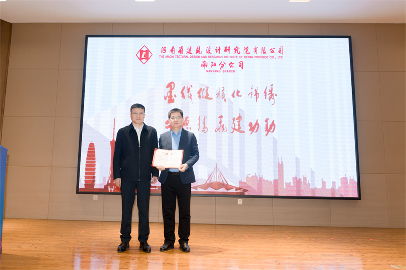 河南省建筑設(shè)計(jì)研究院有限公司董事長安杰、總經(jīng)理張映珍致詞,宣讀任命文件并向南陽分公司總經(jīng)理陳春強(qiáng)頒發(fā)聘書,共同寄語南陽分公司在新的征途上踔厲奮發(fā)、篤行不怠,不斷開拓創(chuàng)新,再繪宛城新藍(lán)圖。