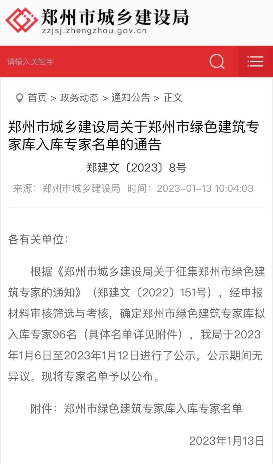 《鄭州市城鄉(xiāng)建設(shè)局關(guān)于鄭州市綠色建筑專家?guī)烊霂?kù)專家名單的通告》(鄭建文〔2023〕8號(hào))現(xiàn)已發(fā)布,河南省建筑設(shè)計(jì)研究院有限公司徐公印、侯博、趙喆、張俊杰、牛沁勇、黃建設(shè)、曹沛源、萬(wàn)寧入選鄭州市綠色建筑專家。