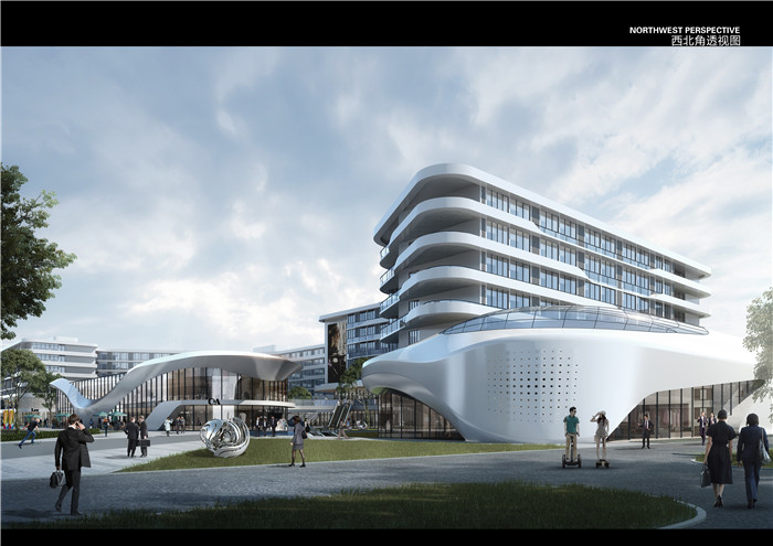 建筑立面材質(zhì)采用鋁板與玻璃組合,色彩運(yùn)用上采用白色調(diào),彰顯建筑的未來感和科技感。同時(shí),將現(xiàn)代時(shí)尚的風(fēng)格也貫穿于整個(gè)景觀環(huán)境設(shè)計(jì)中,構(gòu)建出集現(xiàn)代與時(shí)尚、藝術(shù)與文化于一身的未來之城。