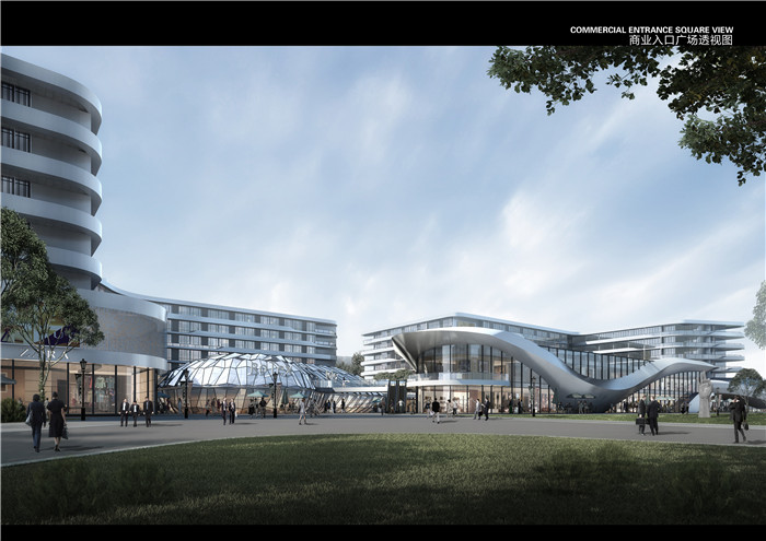 在商業(yè)的形體處理上,采用動(dòng)感飄逸的元素,再次渲染時(shí)尚感與現(xiàn)代感,使商業(yè)街區(qū)生動(dòng)活潑,充分體現(xiàn)港區(qū)以年輕人為主力消費(fèi)群體的特征,同時(shí)營(yíng)造濃厚的商業(yè)氛圍。