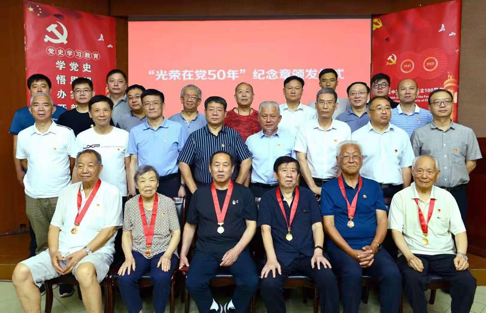 6月25日上午,在中國(guó)共產(chǎn)黨成立100周年之際,公司黨委在報(bào)告廳隆重舉行“光榮在黨50年”紀(jì)念章頒發(fā)儀式,向黨齡達(dá)到50周年、一貫表現(xiàn)良好的部分離退休老黨員代表頒發(fā)“光榮在黨50年”紀(jì)念章。公司黨委委員、各黨支部書(shū)記、退休黨支部委員20余人出席儀式,紀(jì)檢書(shū)記張玉民主持。