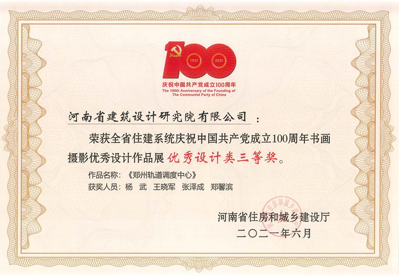 《鄭州軌道調(diào)度中心》榮獲優(yōu)秀設(shè)計(jì)類(lèi)三等獎(jiǎng)