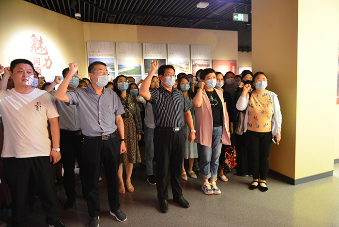 該展覽以時間為線索,全景呈現(xiàn)河南建黨、鄂豫皖革命根據(jù)地、竹溝抗戰(zhàn)、挺進中原、社會主義國家建設探索和改革開放等重大歷史進程、歷史事件和歷史人物。展覽著重詮釋了大別山精神、紅旗渠精神和焦裕祿精神的實質內涵,突出表現(xiàn)了河南人民在中國共產黨的領導下,救亡圖存、建設河南的偉大歷程和改革開放取得的輝煌成就。參觀期間,黨員干部在公司黨委書記安杰的帶領下,面向黨旗,莊嚴宣誓,重溫入黨誓詞。