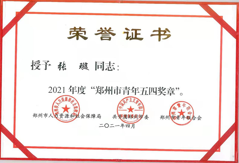 近日,2021年“鄭州市青年五四獎章”名單揭曉,我公司景觀所工程師張璇入選。張璇同志8年專注景觀設計,立足專業(yè),服務社會發(fā)展;開展捐助幫扶,持之以恒,積極投身社會公益事業(yè);亮明黨員身份,致力服務群眾,展現(xiàn)青年擔當。